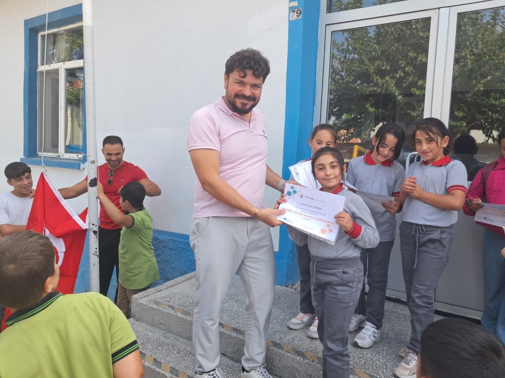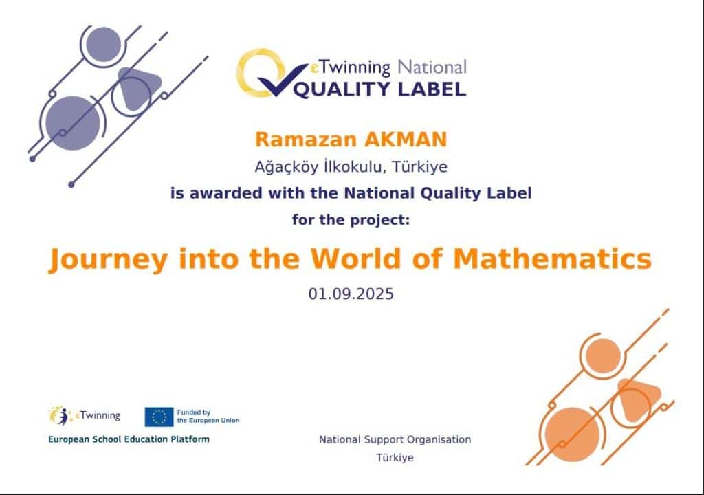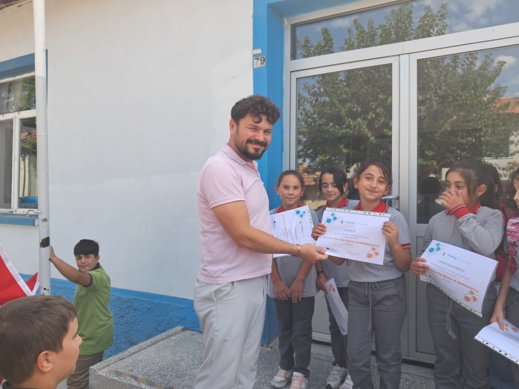 Okulumuz 4 A sınıfı öğrencileri Ramazan AKMAN öğretmenimizin liderliğinde katıldıkları Journey Of The Math World ve Adventures İn EduSTEMLandia adlı E Twinning projelerinden aldıkları Ulusal Kalite Etiketi ödüllerini Okul Müdürümüz Yusuf BAKIR'dan aldilar.